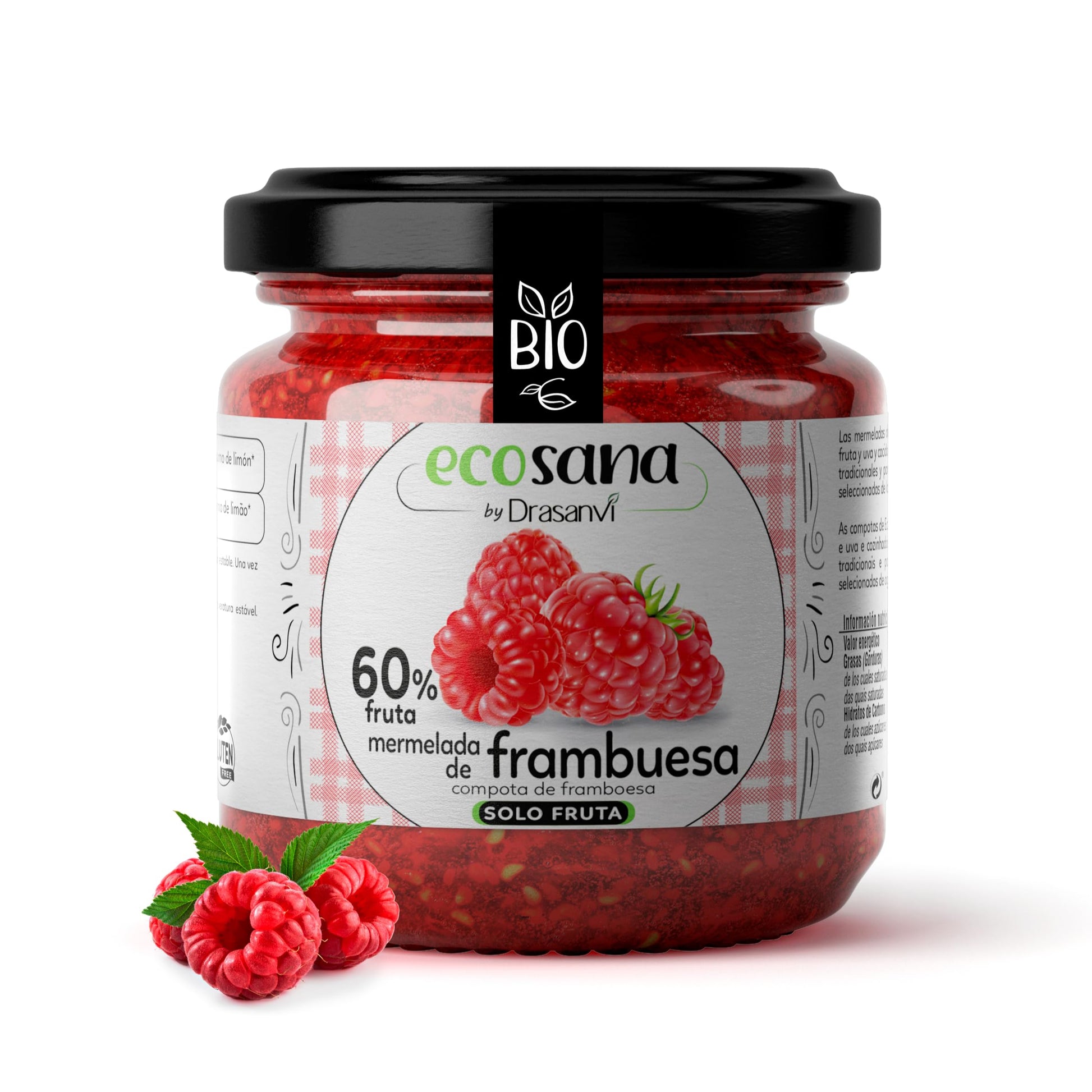 Frambuesa (60%) , Sirope de Ágave , Pectina de Frutas , Zumo de Limon